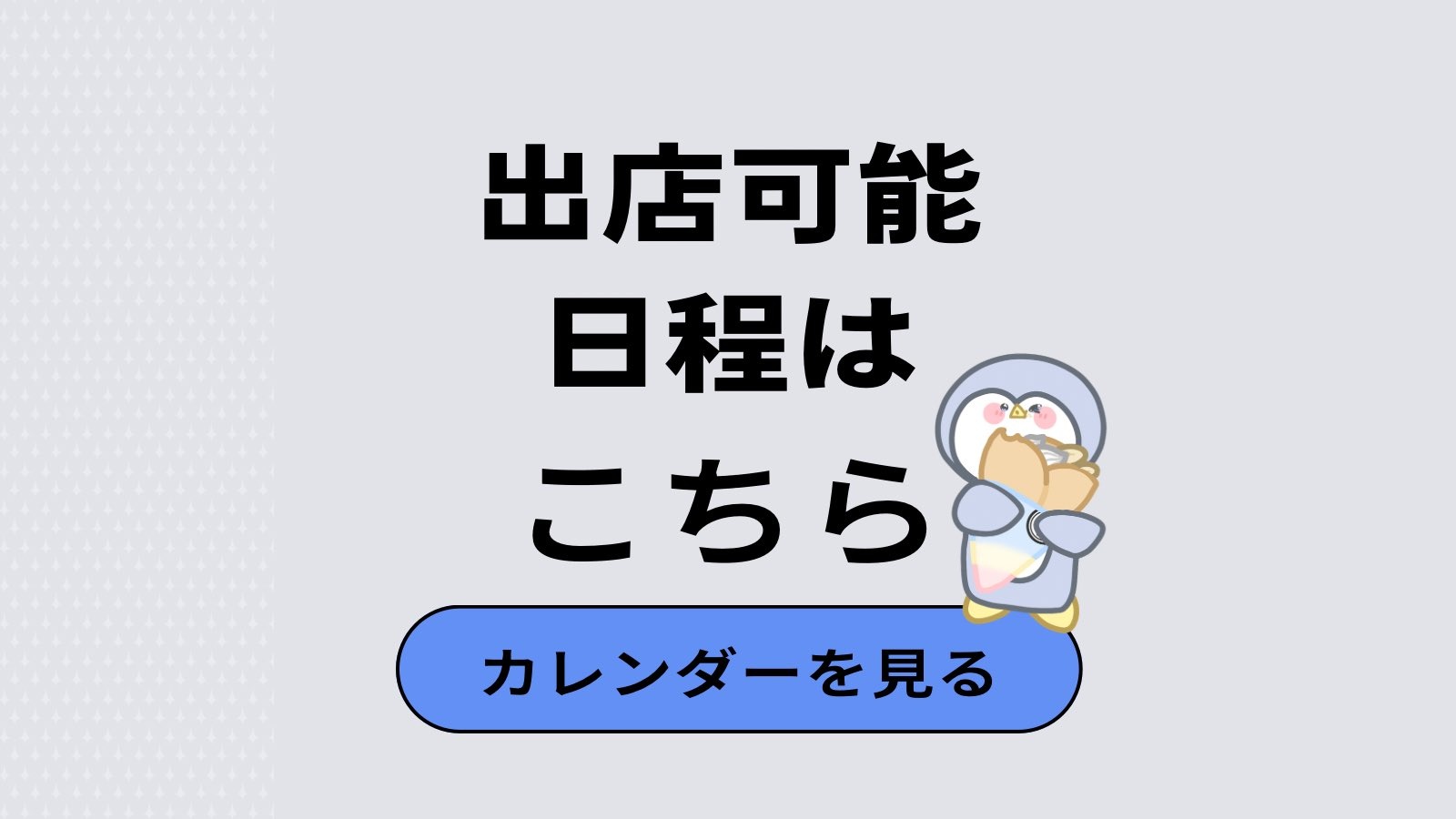 現在の出店可能日程はこちらからご確認いただけます。空きは随時更新しております🐧